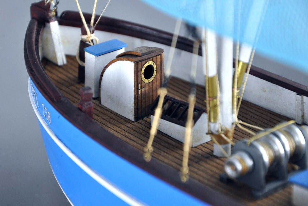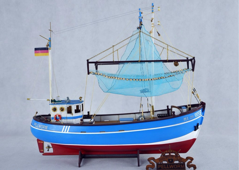 Pellworm crab fishing boat wooden ship model from a material of wood with diecast parts. Suits any room with clean lines and simple colors handcrafted wooden hull and masts with amazing details with easy assemble.