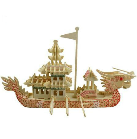 3D Dragon King boat woodcraft construction kit, 135 pieces puzzles. The wooden construction kit is an educational toy which can improve children's intelligence and view. A high-quality wooden simulation sailboat assembly model.